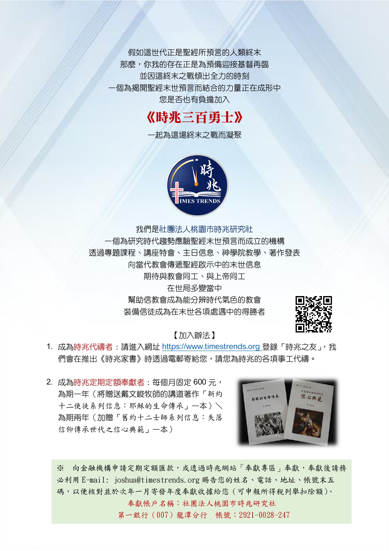 桃園市楊梅區金溪路53號 03-4820461 joshua@timestrends.org